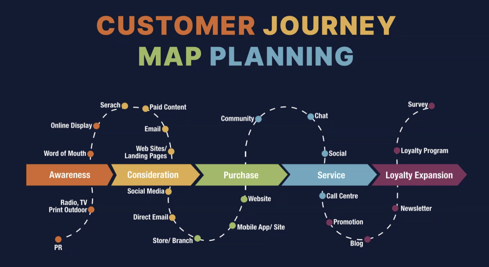The customer journey map below brings this idea to life, showing how each stage offers multiple entry and exit points, demonstrating that real-world journeys are rarely a straight line, but a network of interconnected paths and touchpoints.