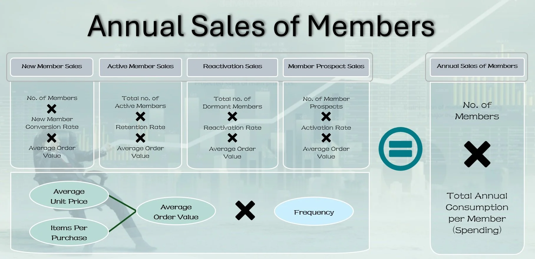 Customer Lifetime Value (CLV) has emerged as a crucial metric in modern retail strategy. By analyzing data from CDPs, businesses can identify and prioritize high-value customer segments, leading to more efficient resource allocation and enhanced retention rates. Through systematic tracking of annual member sales data, businesses can calculate precise CLV metrics to inform their retention strategies. To effectively assess annual sales of members, companies should consider 4 key revenue streams: New member sales, Active member sales, Reactivation sales, and Member prospect sales.