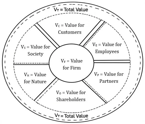 While customer retention strategies focus primarily on creating value for customers, it is essential to recognize that effective customer analytics initiatives simultaneously generate value across multiple stakeholder groups. The Seven Pillars of Value framework (Vt = Vc + Vf + Vo + Ve + Vp + Vs + Vn) illustrates how customer retention investments create a distributed value system encompassing customers (Vc), employees (Ve), partners (Vp), shareholders (Vo), nature (Vn), society (Vs), and the firm itself (Vf) as the central orchestrator. In the context of retail customer analytics, this framework demonstrates that the Customer Care and Communication strategies identified in this research not only enhance customer retention but also improve employee satisfaction through clearer customer interaction processes, strengthen partner relationships through improved customer lifetime value, deliver shareholder returns through reduced acquisition costs, and contribute to societal value through more sustainable business practices. This holistic perspective reinforces why customer retention strategies that cost five times less than acquisition represent more than just cost savings, they create sustainable value across the entire business ecosystem.