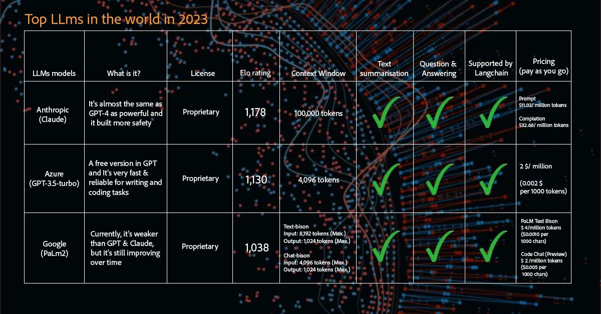 Large Language Models (LLMs) are frequently used today, with Generative AI enhancing diversity via AI-powered chatbots that assist a diverse user base. The tech industry recently also have a piece of good news: META just released the new LLM (Llama 2) to Azure customers on 18 JUL 2023 this week (details about this repository), demonstrating the powerful capabilities of Generative AI, which refers to machine learning techniques (i.e. Large Language Models) that can generate human-like text and analysis. When properly implemented, they can help identify & reduce biases encoded in big data. Some of the most powerful AI LLMs today include Anthropic (Claude), Azure (GPT 3.5 Turbo), and Google (PaLm2). These proprietary licensed models can prohibit users from sharing or output without authorization and they also support text summarization, Q&A and Langchain.